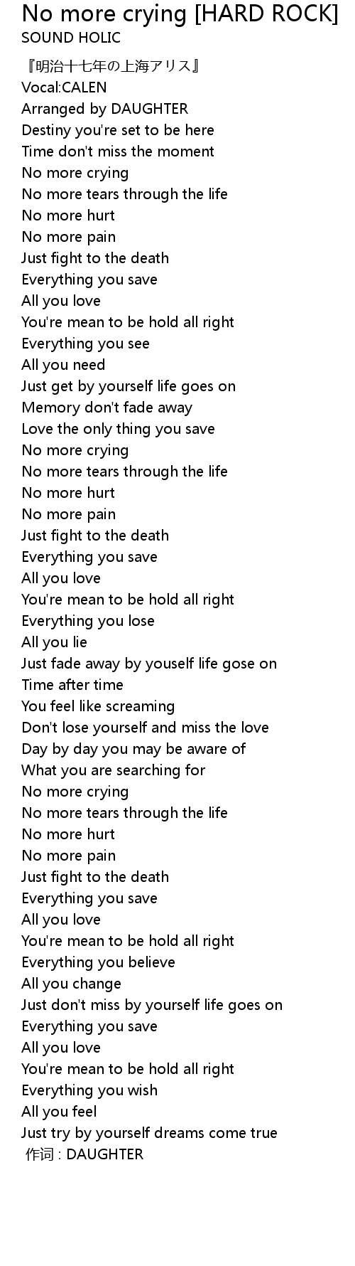 | 歌曲 | No more crying [HARD ROCK] |