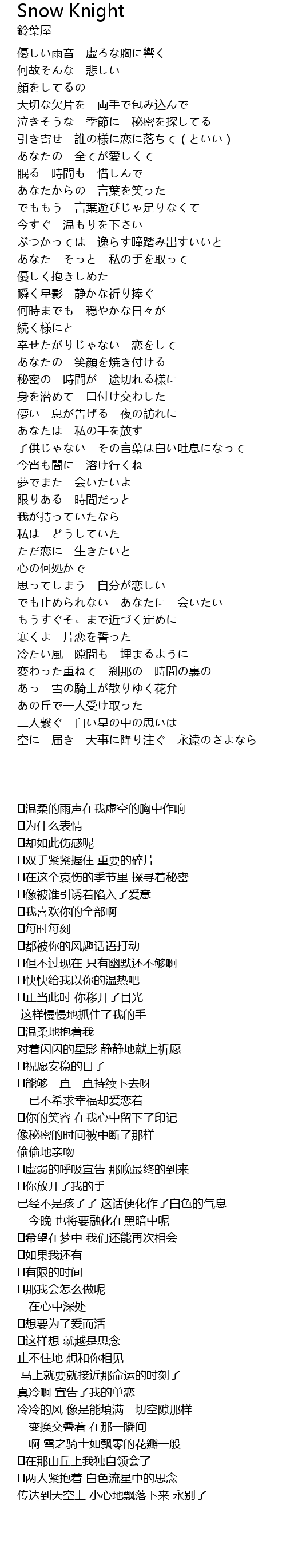 | [04:54] | 啊 雪之骑士如飘零的花瓣一般 |