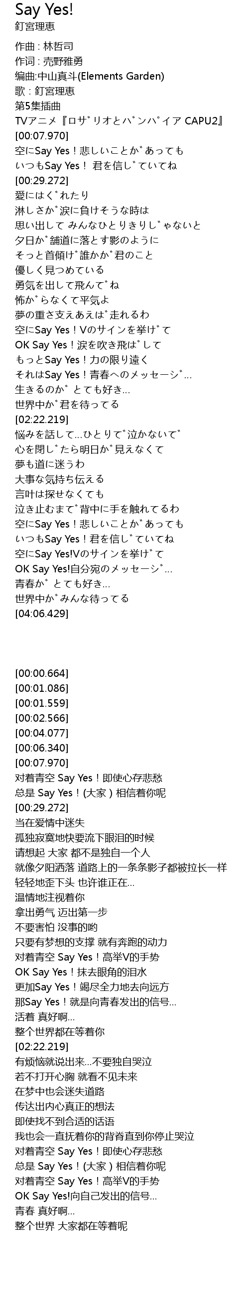 | [00:14.840] | kōng Say Yes! bēi |