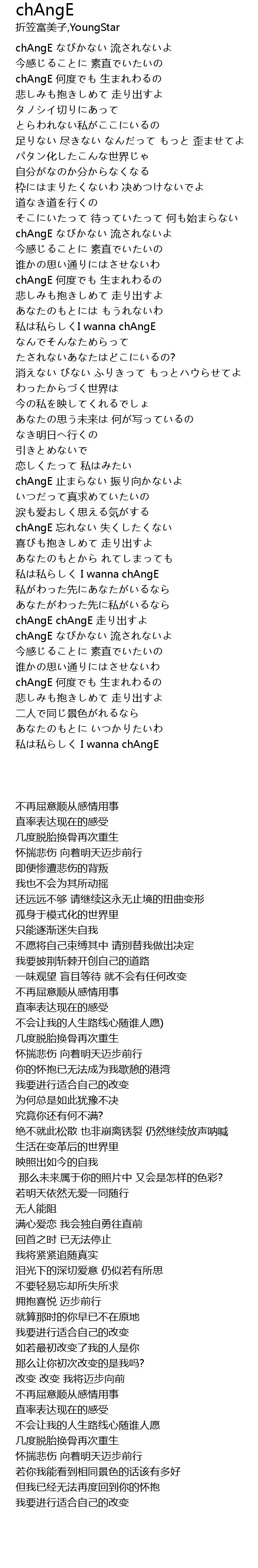 | [02:20.38] | chAngE 忘れない 失くしたくない |
