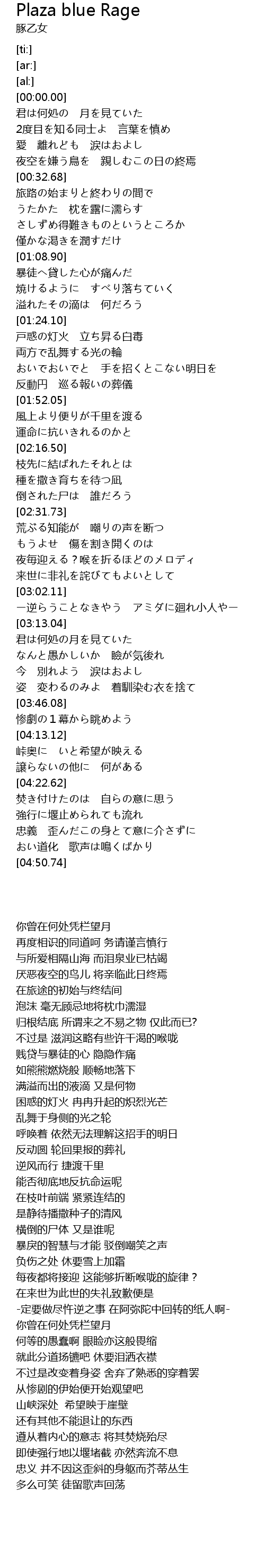 | [04:44.05] | おい道化 歌声は鳴くばかり |