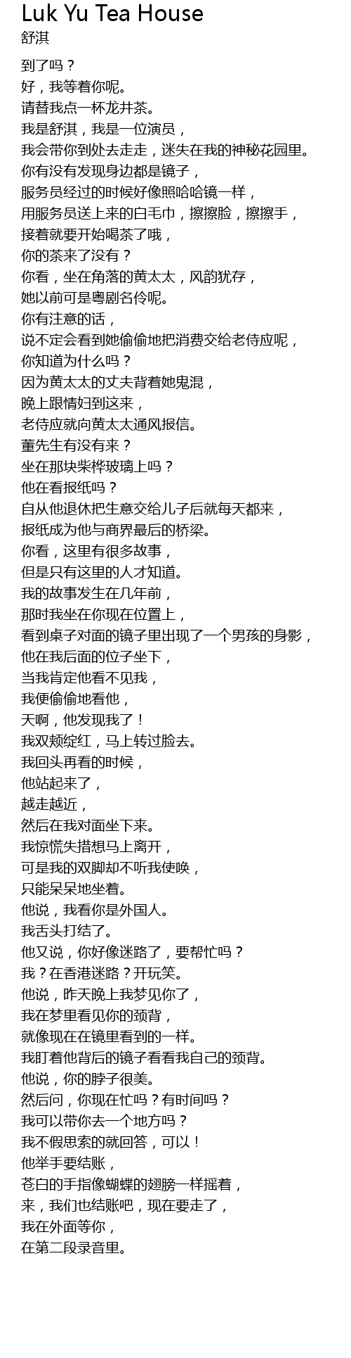 | 歌曲 | Luk Yu Tea House |