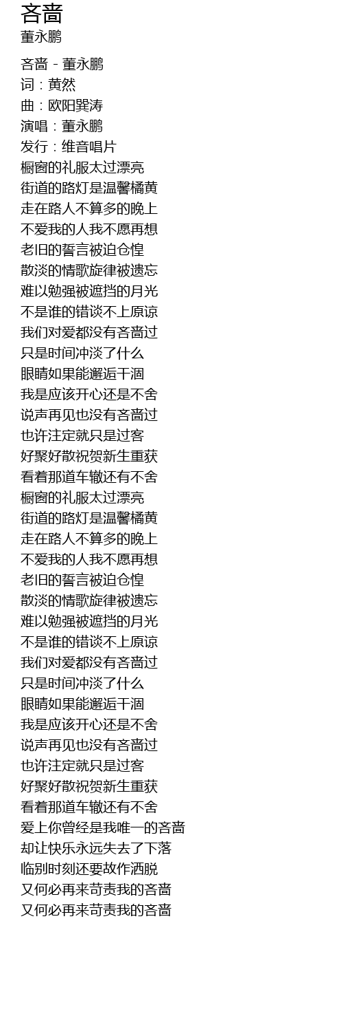 | [00:06.14] | 演唱:董永鹏 |