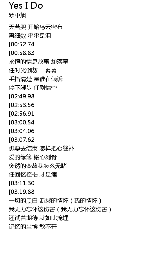 | [03:53.79][02:49.98][01:33.97] | YES I DO YES I DO |