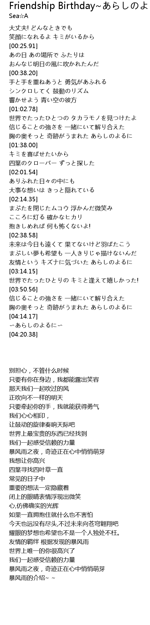 | [03:00.88] | 友情的羁绊 根据发现的暴风雨 |