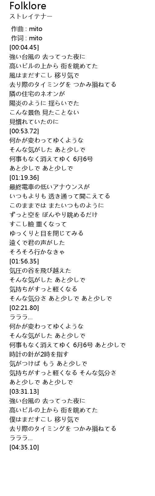 | [02:59.88] | 何事もなく消えてゆく 6月6号 あと少しで |