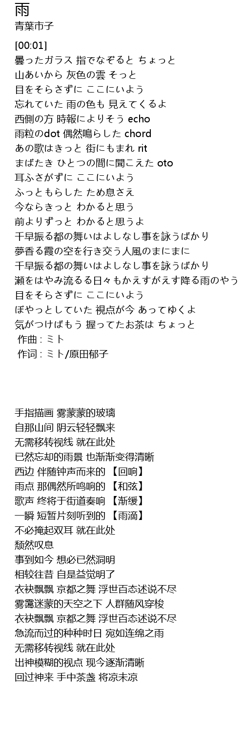 | [02:00] | 雨粒のdot 偶然鳴らした chord |