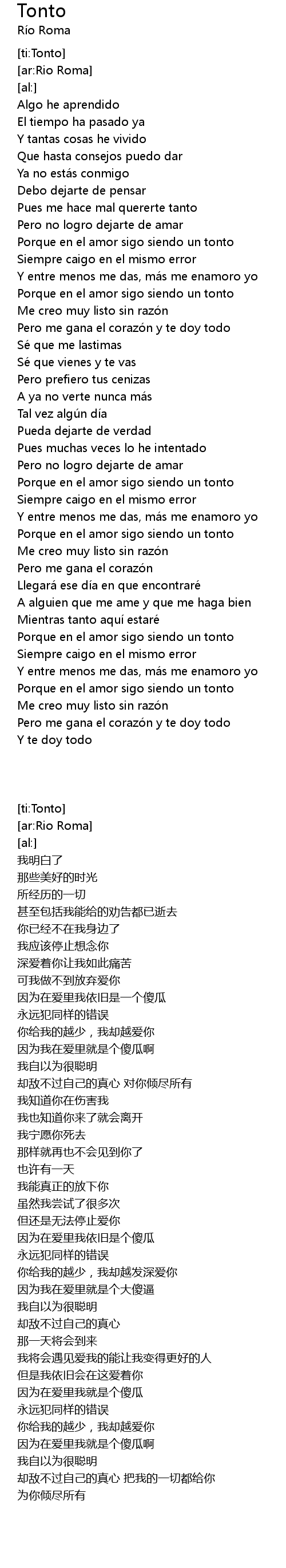 | [00:55.67] | Porque en el amor sigo siendo un tonto |
