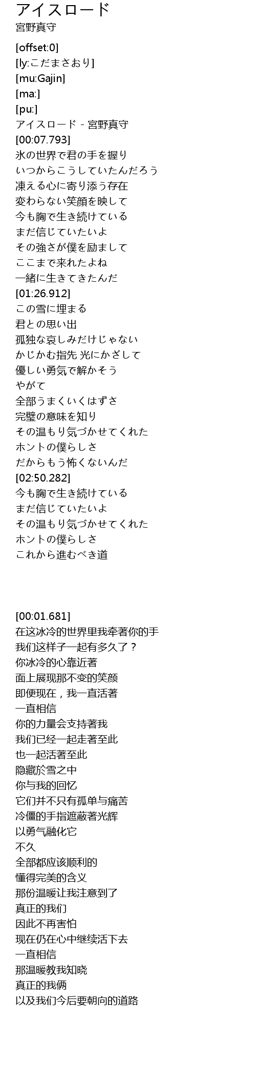 | [00:01.681] | アイスロード - 宮野真守 |