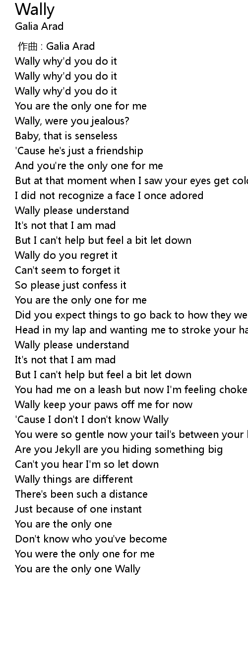 | [02:06.280] | 'Cause I don't I don't know Wally |