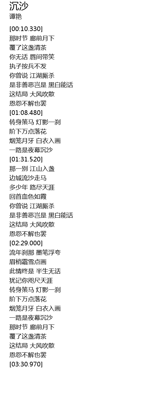 | [02:51.660] | zhuǎn shēn cè mǎ dēng yǐng yī shā |