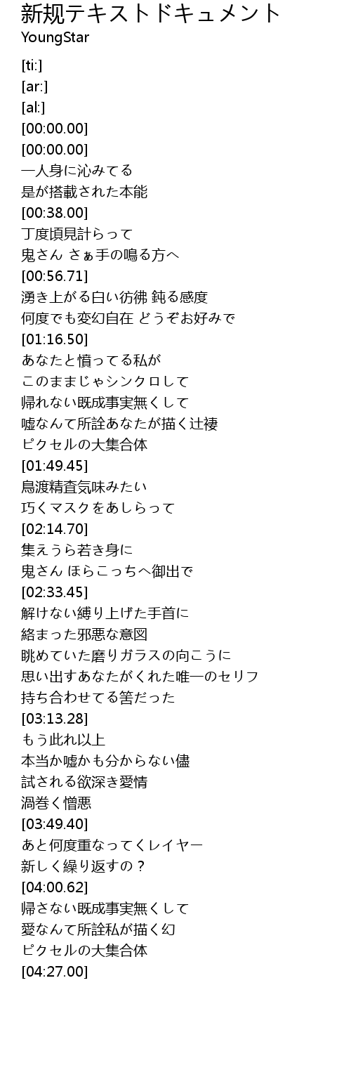 | [03:38.39] | 本当か嘘かも分からない儘 |