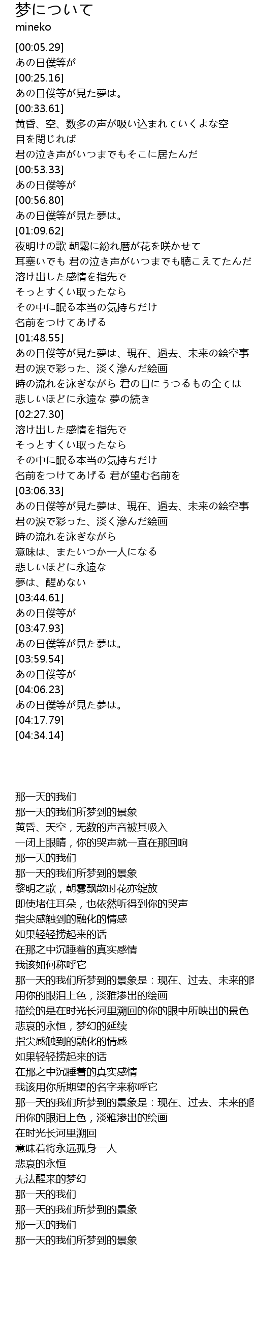 | [03:53.49] | あの日僕等が見た夢は。 |