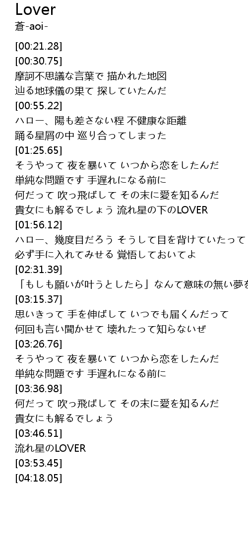 | [01:45.90] | 貴女にも解るでしょう 流れ星の下のLOVER |