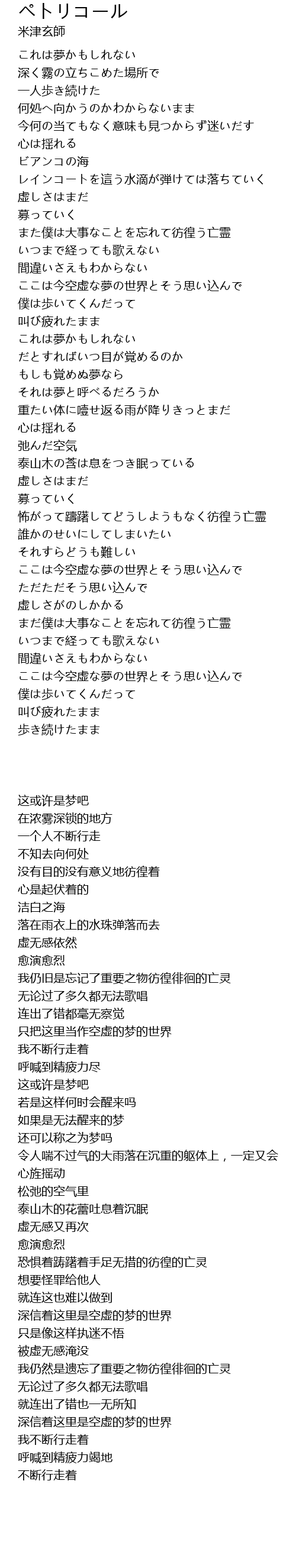 | 歌曲 | ペトリコール |