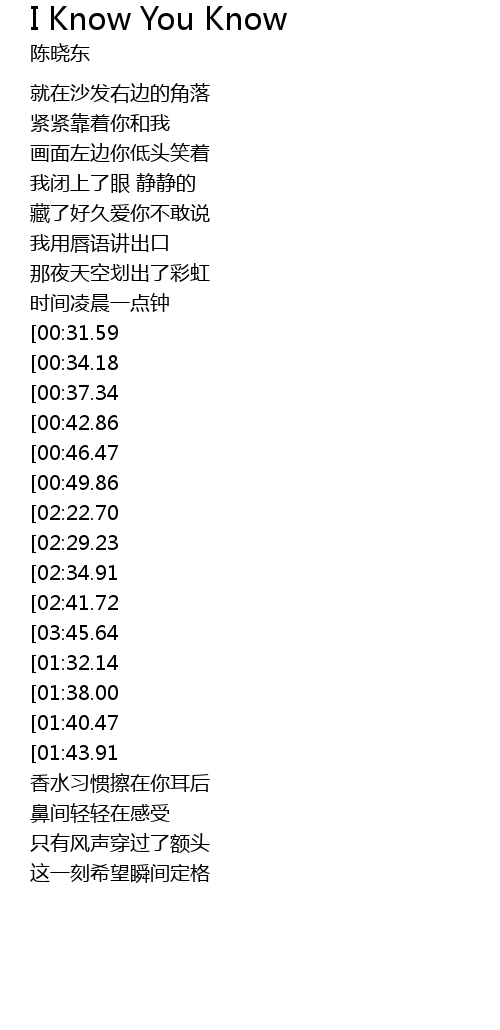 | [03:01.30][02:22.70][00:54.66] | I Know You Know |