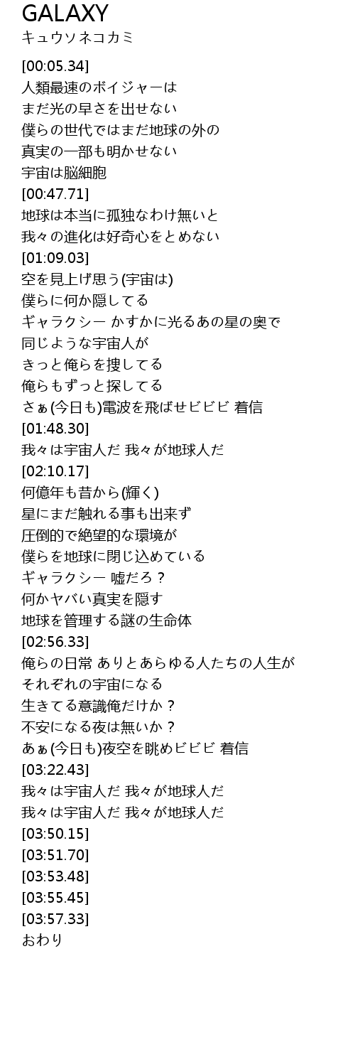 | [02:45.16] | ギャラクシー 嘘だろ? |