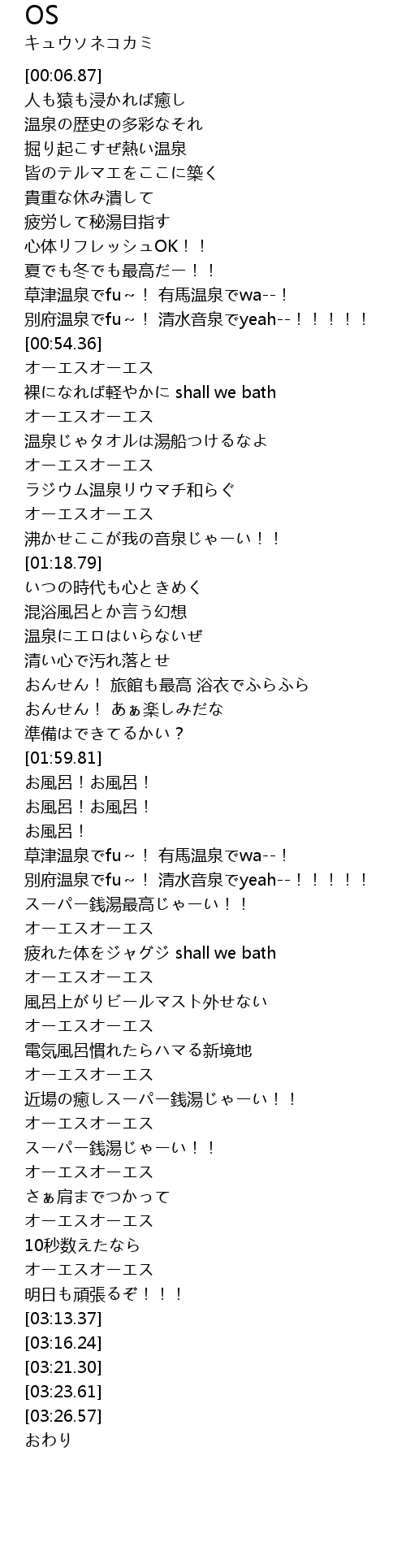 | [02:14.73] | 草津温泉でfu~! 有馬温泉でwa--! |