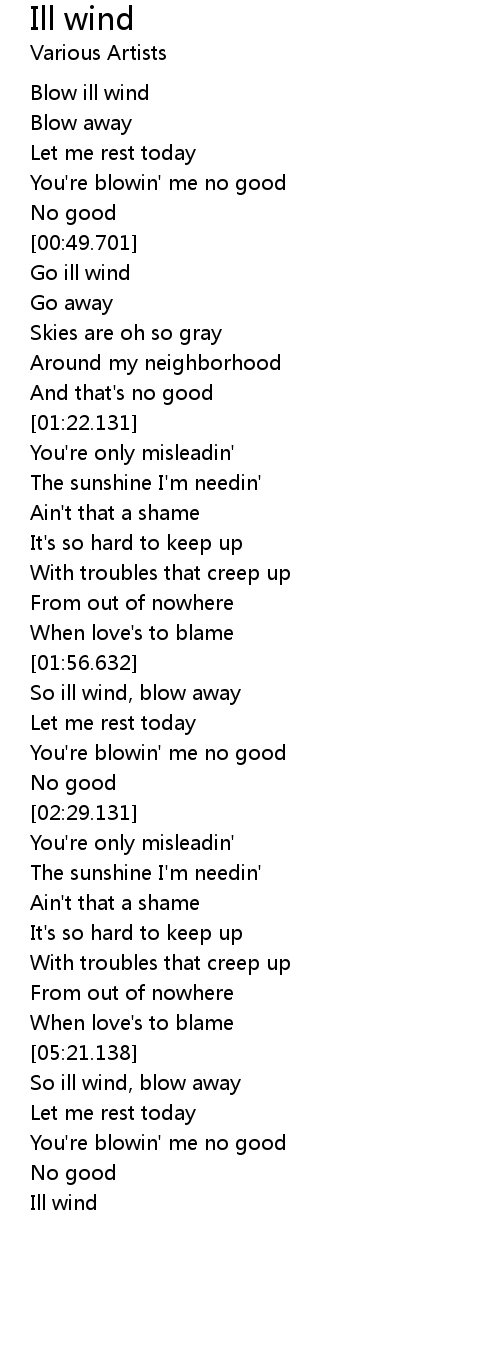So ill wind, blow away |
