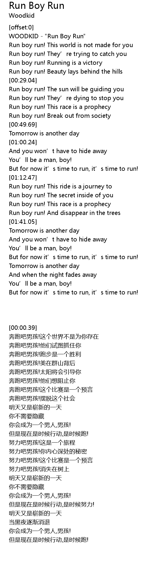 | [00:00.39] | WOODKID " Run Boy Run" |