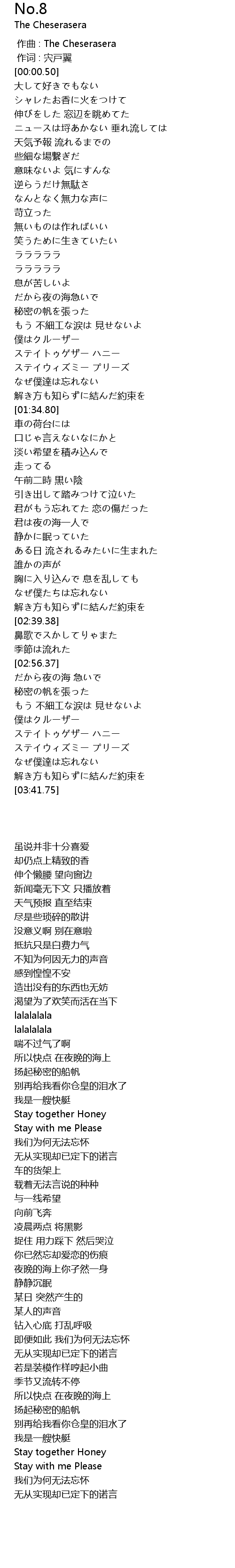 | [03:17.33] | ステイトゥゲザー ハニー |