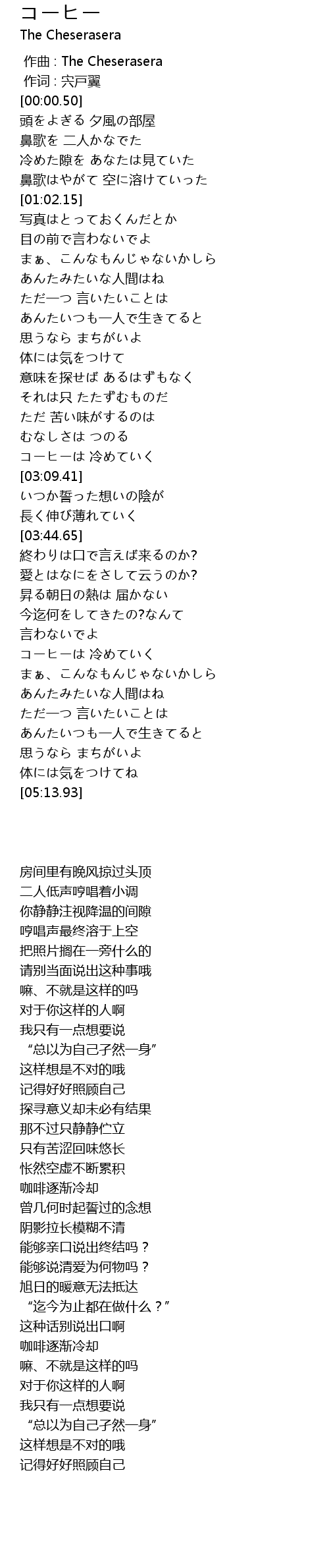| [03:02.06] | 咖啡逐渐冷却 |