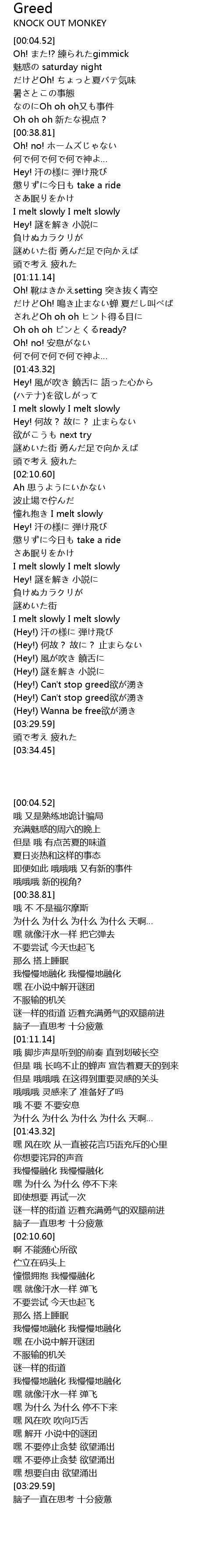 | [03:20.11] | Hey! Can' t stop greed yù yǒng |