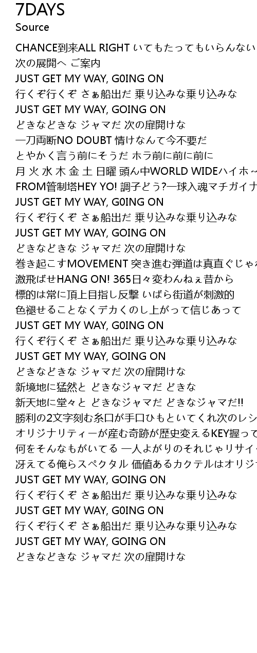 | 巻き起こすMOVEMENT 突き進む弾道は真直ぐじゃねえぞ | |