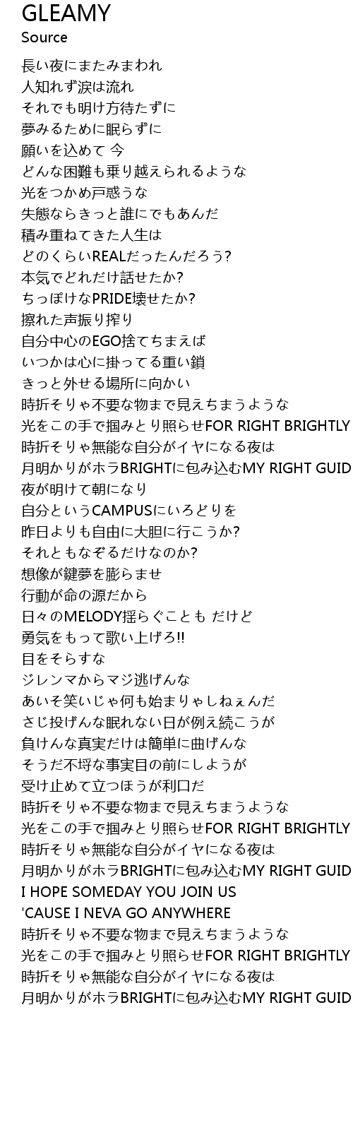 | 光をこの手で掴みとり照らせFOR RIGHT BRIGHTLY | |