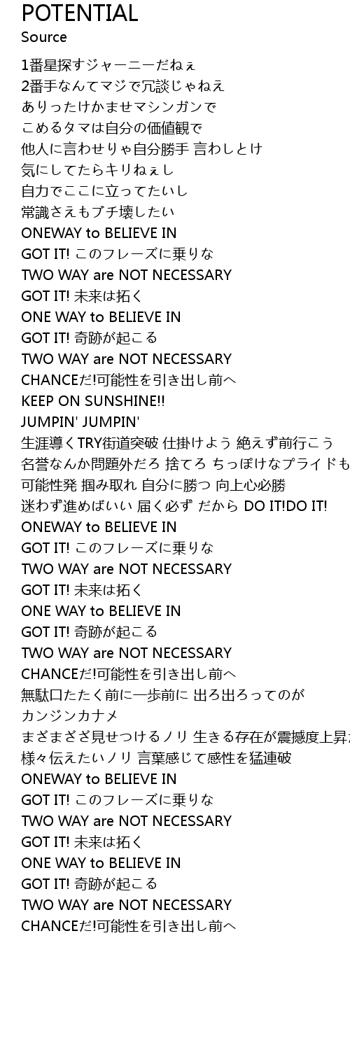 | 歌曲 | POTENTIAL |