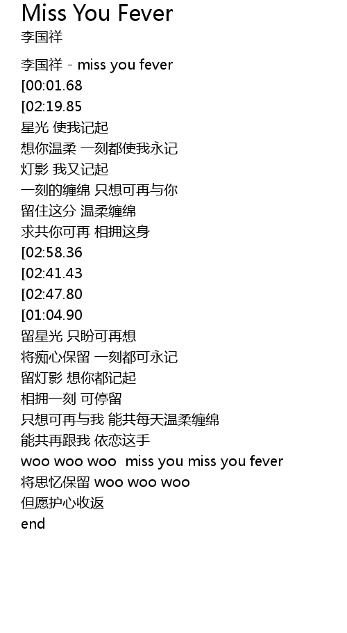 | [02:34.51] | woo woo woo miss you miss you fever |