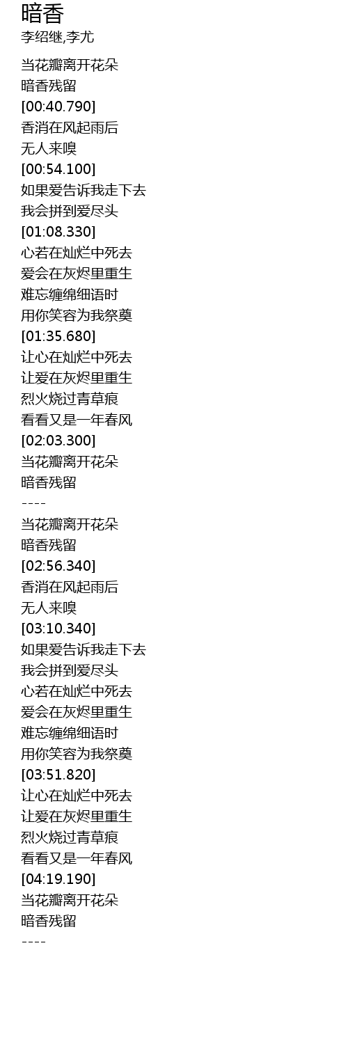 | [03:26.380] | xīn ruò zài càn làn zhōng sǐ qù |