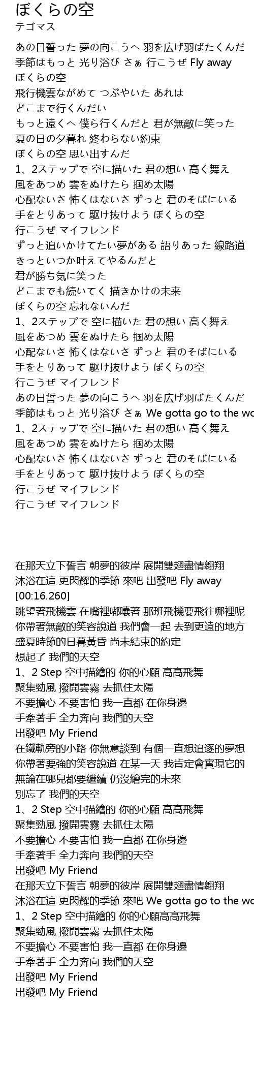 | [01:55.210] | ぼくらの空 忘れないんだ |