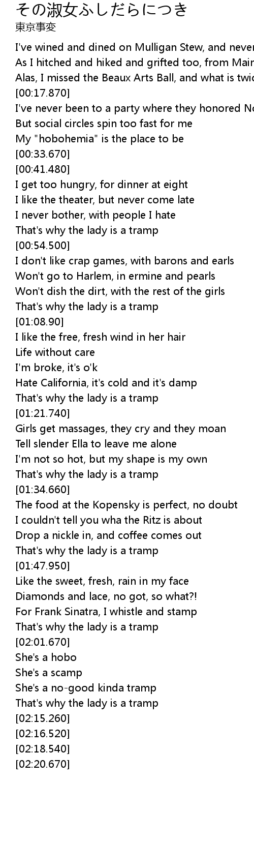 | [02:09.39] | That's why the lady is a tramp |