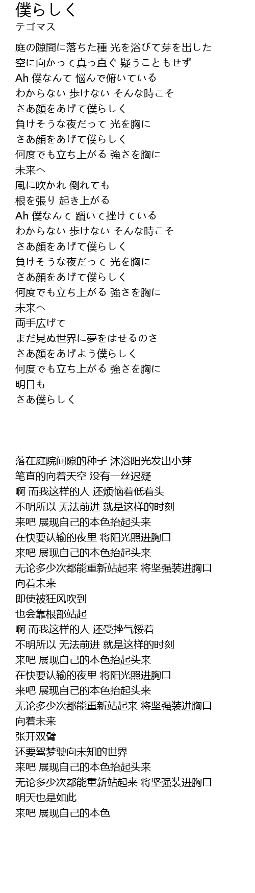 | [01:45.310] | さあ顔をあげて僕らしく |