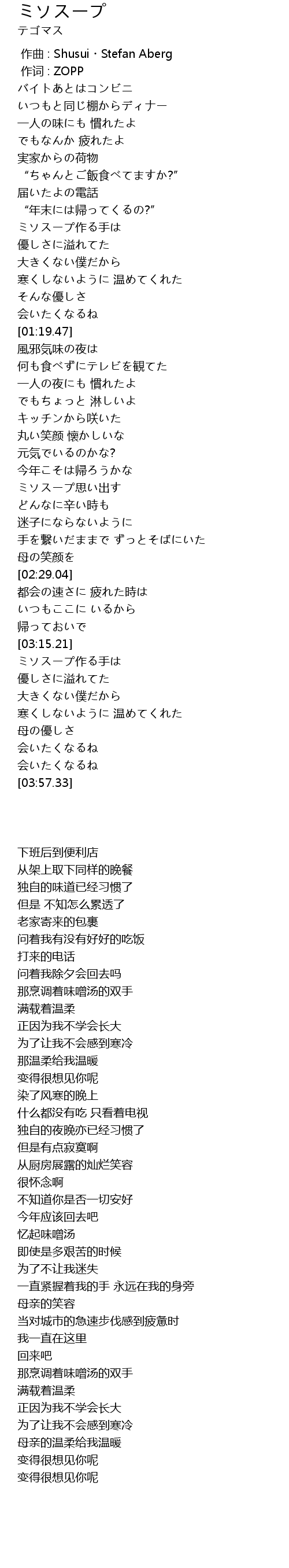 | [03:16.02] | 那烹调着味噌汤的双手 |