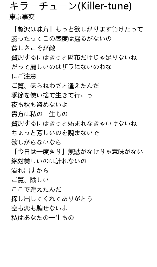 | [00:00.288] | 「贅沢は味方」もっと欲しがります負けたって |