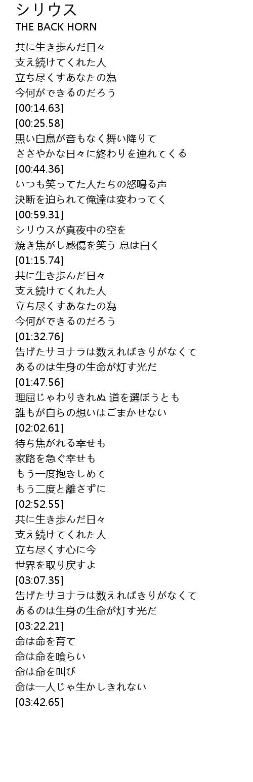 | [03:33.39] | 命は一人じゃ生かしきれない |