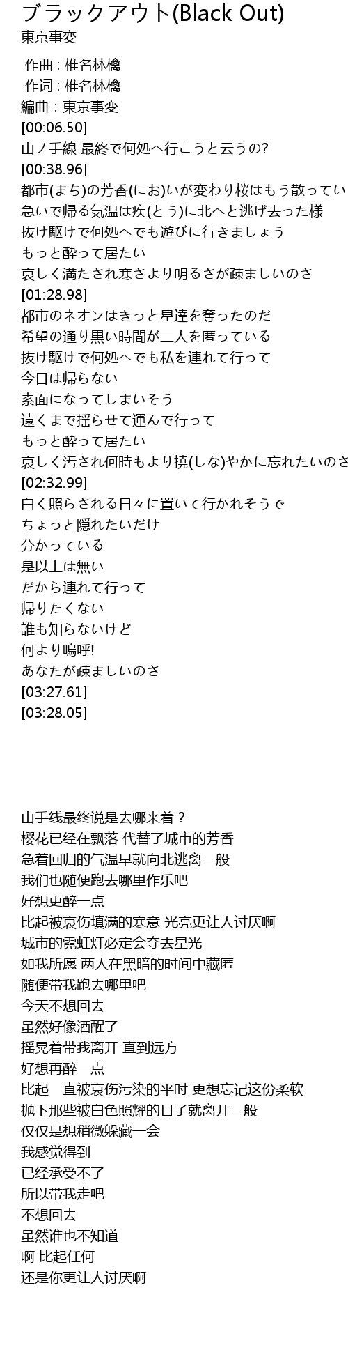 | [00:28.73] | 山ノ手線 最終で何処へ行こうと云うの? |
