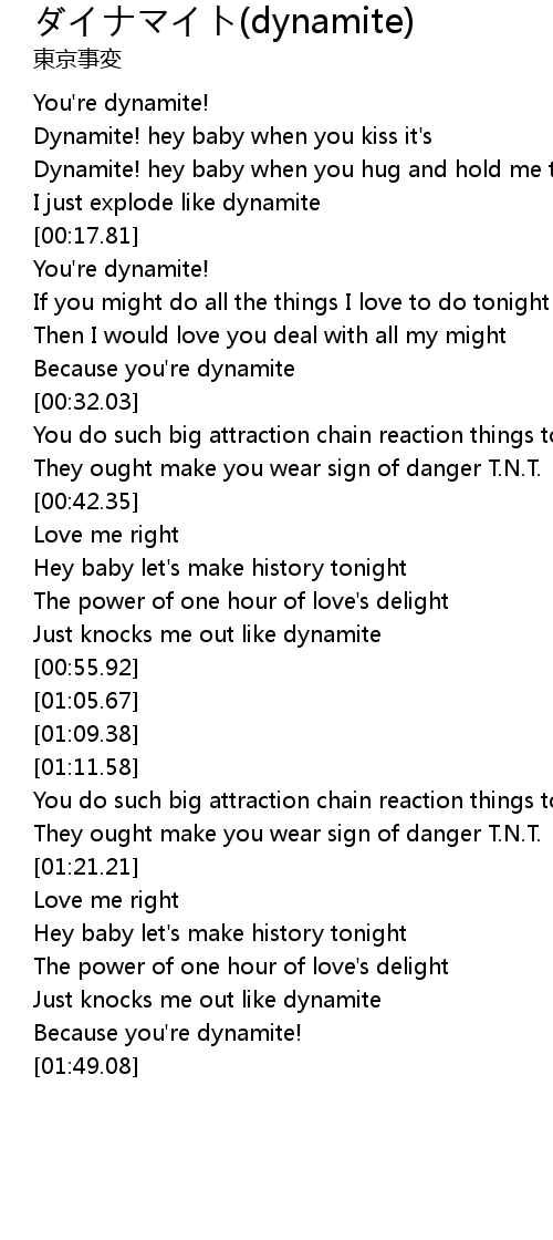 [00:04.60] Dynamite! hey baby when you kiss it's