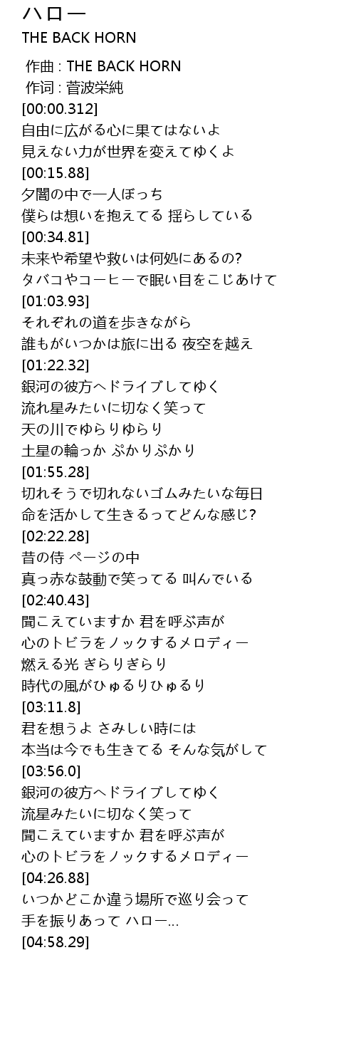 | [00:00.00] | 作曲 : THE BACK HORN |