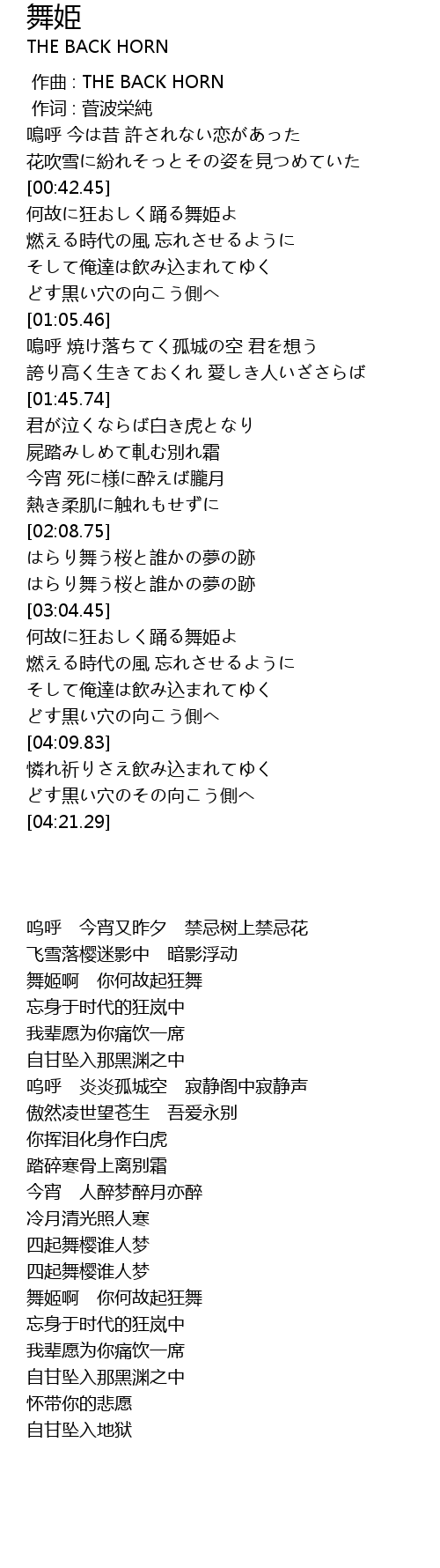 | [00:43.74] | 舞姬啊 你何故起狂舞 |