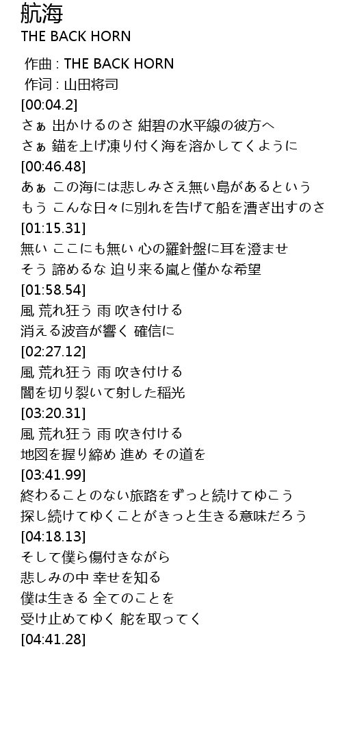| [00:00.00] | 作曲 : THE BACK HORN |
