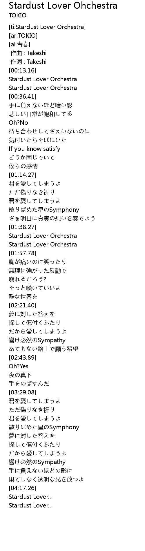 | [04:22.76] | Stardust Lover |