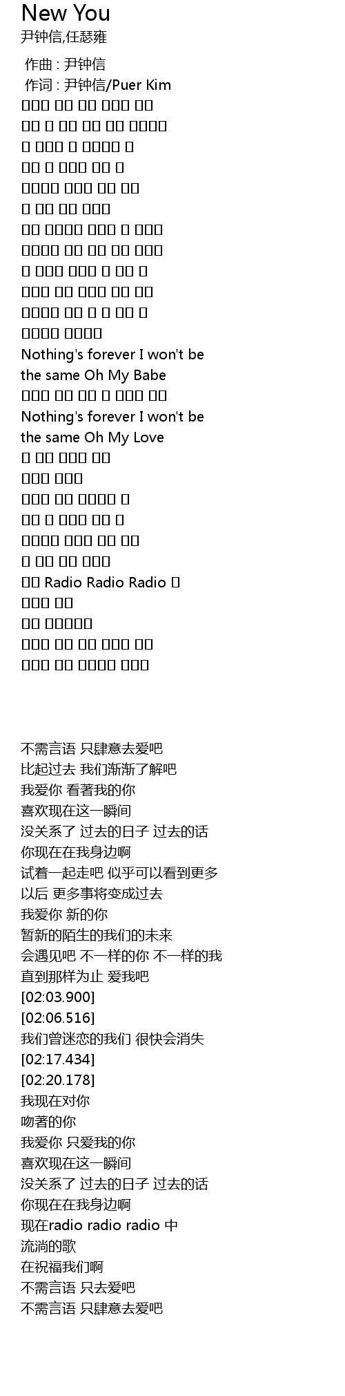 | [00:01.00] | 作词 : 尹钟信/Puer Kim |