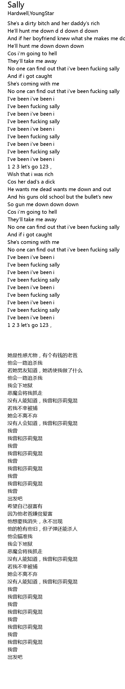 | [01:19.201] | I' ve been fucking sally |