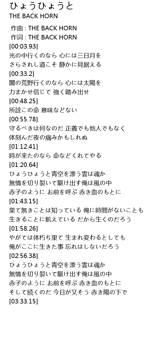 | [00:01.00] | zuò cí : THE BACK HORN |