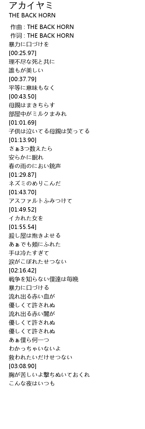 | [00:00.00] | 作曲 : THE BACK HORN |