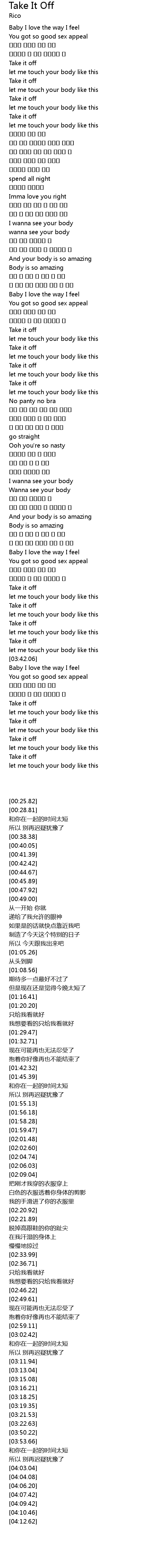 | [00:38.38] | Take it off |