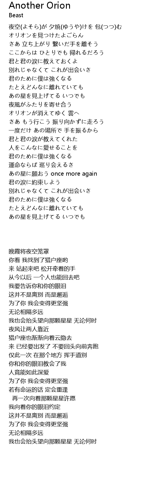 | 歌曲 | Another Orion |